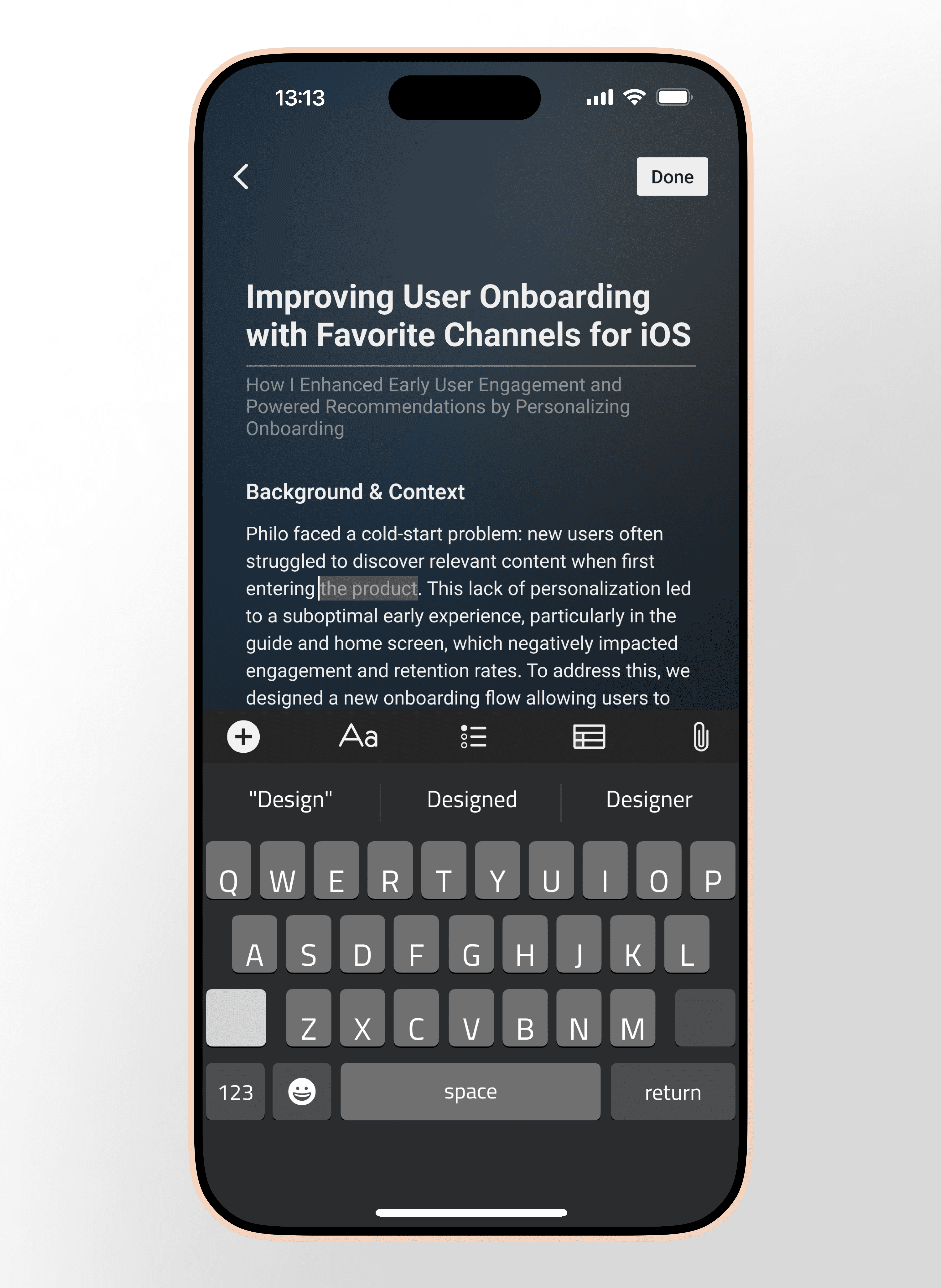 An app concept that helps creatives track their process and build better case studies.